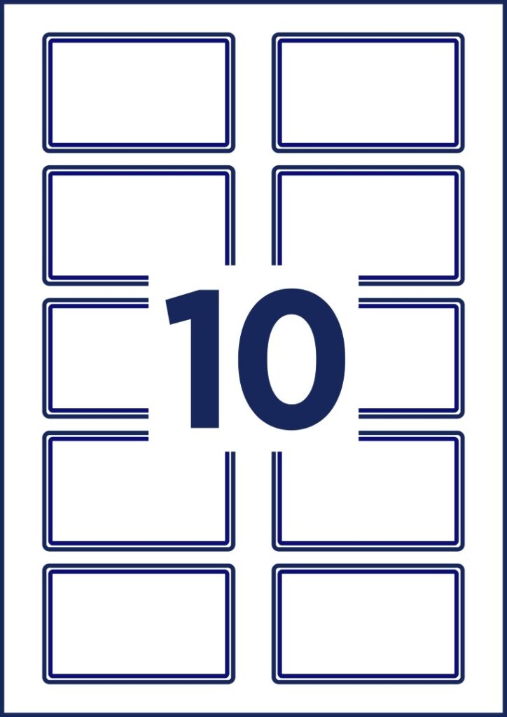 20 archů A4, rozměr 80x50 mm, 200 ks jmenovek v balení, umělé hedvábí, snímatelné lepidlo, barva bílá s modrým okrajem. Typ tiskárny: černobílá laserová, barevná laserová.