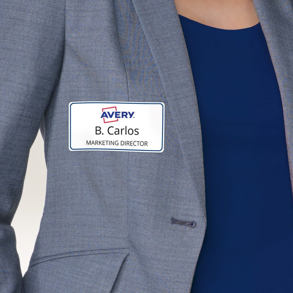 Potisknutelné jmenovky Avery Zweckform L4787-20 jsou ideální jako samolepící jmenovky na semináře, konference, kongresy, řízení návštěv atp. Etikety jsou vyrobeny z flexibilního umělého hedvábí a jsou použitelné na textilie všech typů. Bezpečná přilnavost a odnímatelnost bez zanechání stop lepidla a poškození oděvu. Jmenovku lze vyjmout z archu i s částí podkladového papíru, na který ji můžete po ukončení akce opět nalepit a uschovat pro pozdější použití. Při tisku se můžete spolehnout na bezproblémový průjezd archů tiskárnou bez uvíznutí a ostrý tiskový výstup, který se díky vynikajícímu přilnutí tonerového prášku nerozmazává. Samolepící jmenovky na oblečení Avery L4787-20 jsou vhodné pro všechny běžné černobílé i barevné laserové tiskárny.