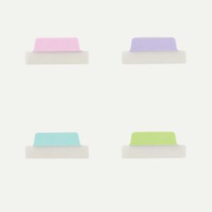 rozměr 63,5×25,4 mm, 24 ks v balení, čirá PET fólie, snímatelné lepidlo, 4 pastelové barvy.