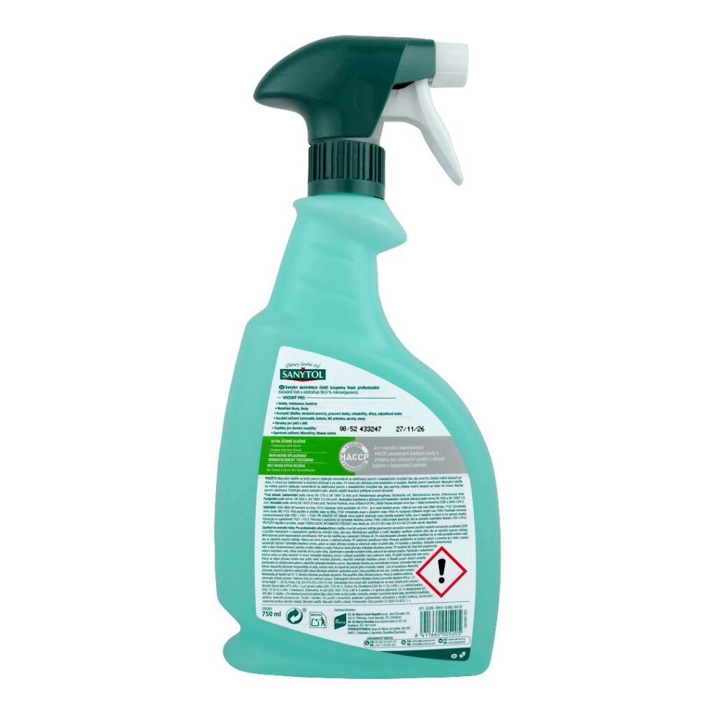 VELKÉ BALENÍ - Sanytol dezinfekce čistič koupelny fresh profesionální důkladně čistí a odstraňuje 99,9% mikroorganismů. Vhodný pro: • Hotely, restaurace, kavárny • Mateřské školy, školy • Kuchyně (dlažba, nerezové povrchy, pracovní desky, chladničky, dřezy, odpadkové koše) • Sociální zařízení (umyvadla, baterie, WC prkénka, sprchy, vany) • Výrobky pro péči o děti • Doplňky pro domácí mazlíčky • Sportovní zařízení, tělocvičny, fitness centra. Produkt je označen logem V SOULADU S DOPORUČENÍMI HACCP - Je v souladu s doporučeními HACCP, uznávanými českými úřady a předpisy pro referenční systém v oblasti hygieny a bezpečnosti potravin. Velké balení v recyklovatelné plastové ergonomicky tvarované láhvi s uzamykatelným mechanickým rozprašovačem obsahuje 750ml.