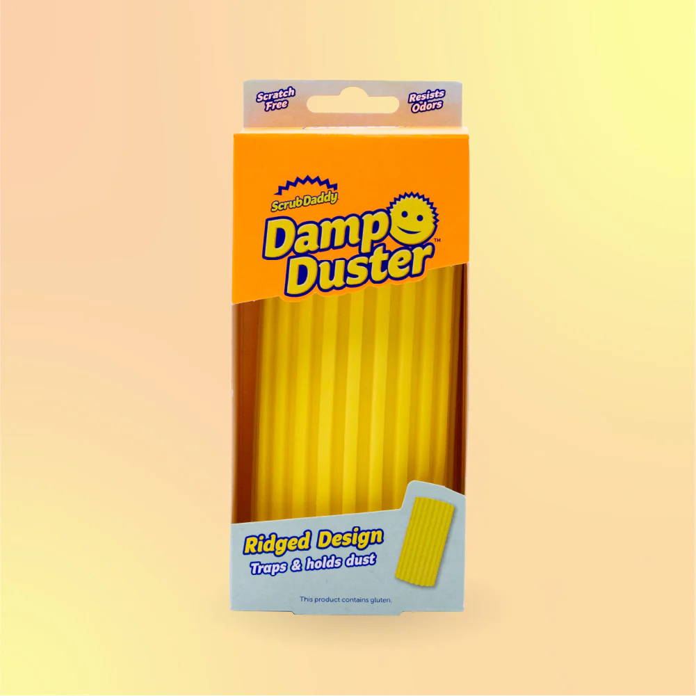 Houbička na utírání prachu Damp Duster díky svému vlnitému provedení jediným rychlým pohybem shromáždí a vstřebá prach. Po opláchnutí vodou je houbička opět připravena k používání. Dokonalý pomocník pro odstraňování prachu ze závěsů, ventilačních otvorů, rámů, zábradlí, poliček, zrcadel a jiných ploch.