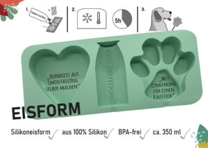 Postarejte se vašemu čtyřnohému příteli o fantastický zážitek se setem pro výroby té nejzdravější psí zmrzliny. Zmrazte lahodné kachní smoothie ve formách atraktivních tvarů s jedlými tyčinkami, které jsou jako třešnička na dortu tohoto dokonalého pamlsku a svačinky v jednom. Lízání pejska uklidní a zabaví, navíc se nemusíte bát podchlazeného bříška, protože vitamíny se do něj dostávají tak pozvolna, že je trávící trakt v bezpečí. Pochoutka je určená jak štěňatům, tak seniorům, kteří odmítají i v létě pít, ale je nutné jejich pitný režim dodržovat.