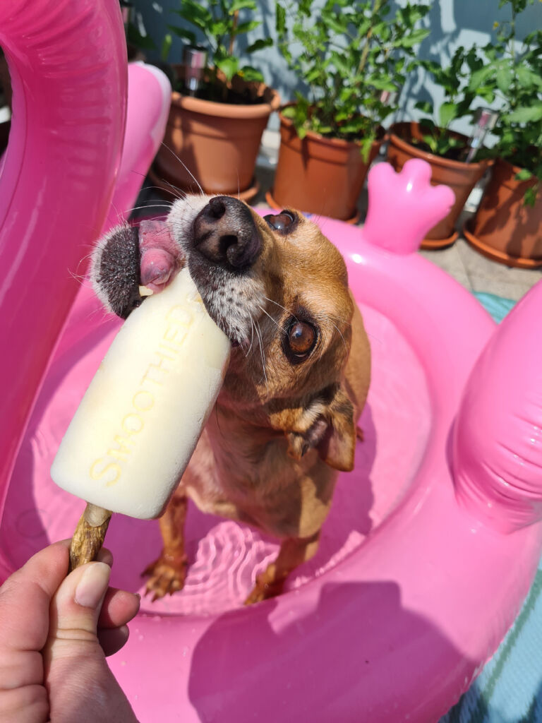 Psí smoothie je fantastická svačinka a zmrzlina zase zábavná pochoutka. Proč to nespojit dohromady? Zmrazené psí smoothie navíc pro pejska představuje lahodný způsob, jak dodržovat pitný režim.
