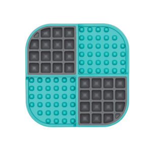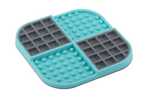 LickiMat Splash – Připevněte polypropylenovou misku s křížky pomocí přísavky na jakýkoliv hladký povrch, jako jsou třeba kachličky nebo vana. Typ Splash je ideální pro tekutější a lepivější dobroty, opět na sebe můžete navrstvit a zamrazit několik druhů pochoutek.