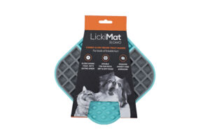 LickiMat Wobble je miska s gumovými bodlinkami uvnitř. Můžeme ji natřít arašídovou pastou, rybičkami z konzervy i mletým masem, nejideálnější je pro tekuté záležitosti, obzvláště pro jejich zamražení. Zkuste na sebe udělat několik vrstev, aby se pejsek s každým dalším líznutím přiblížil novému chuťovému zážitku a vy jste měli několik hodin klid.