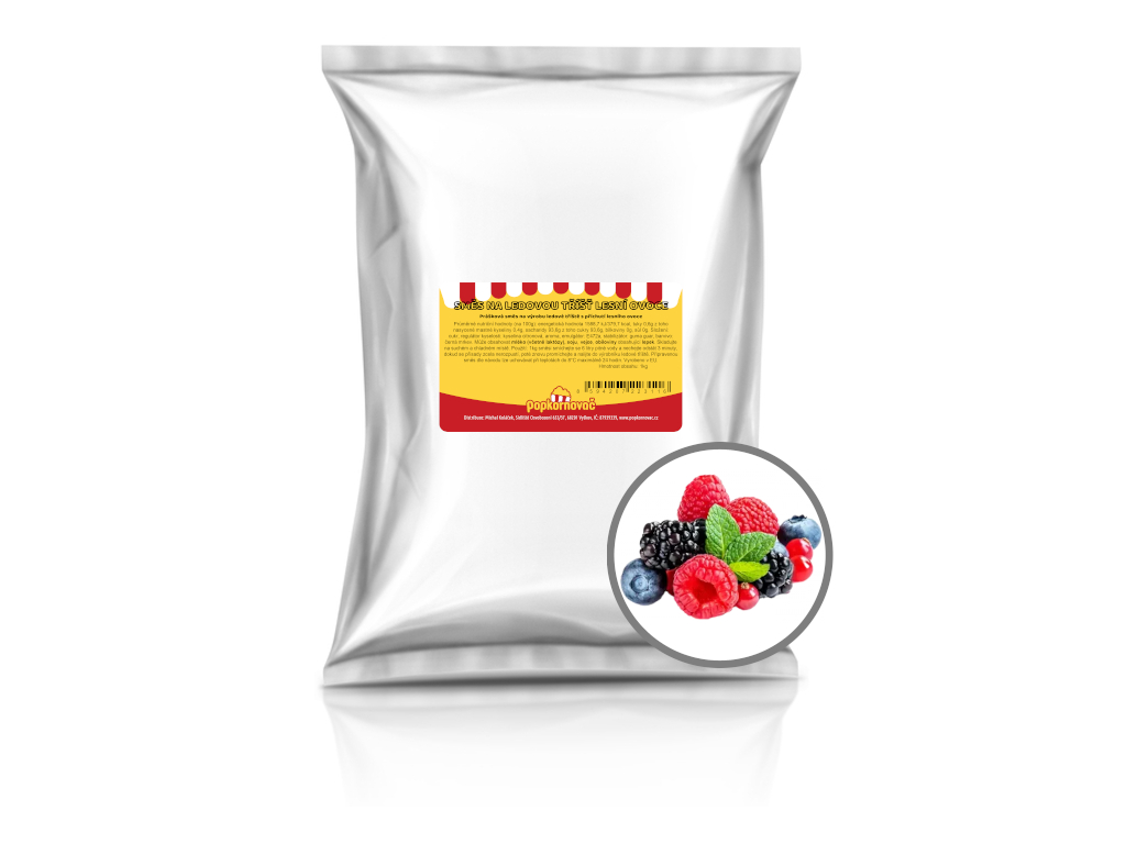 Prášková směs na výrobu ledové tříště s příchutí lesního ovoce, stačí smíchat s vodou, balení 1kg sáček