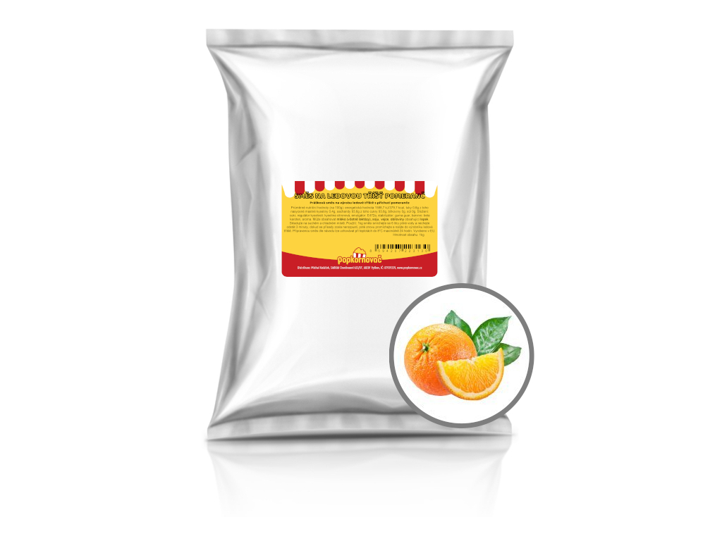 Prášková směs na výrobu ledové tříště s příchutí pomeranče, stačí smíchat s vodou, balení 1kg sáček