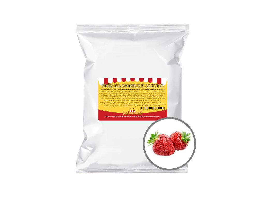 Sušená prášková směs na výrobu zmrzliny v domácích zmrzlinovačích s příchutí jahod, balení 2kg sáček