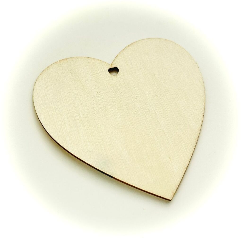 Dřevěný výřez ve tvaru srdce o průměru 10 cm s výřezem na zavěšení vhodný pro dekoraci a tvoření. Ideální na tvoření s použitím akrylových barev či s akrylovými fixami. Výřezy jsou krásné zalité pryskyřicí, jsou vhodné pro kreativní tvoření, jmenovky, podtácky, závěsy, dekorace aj.