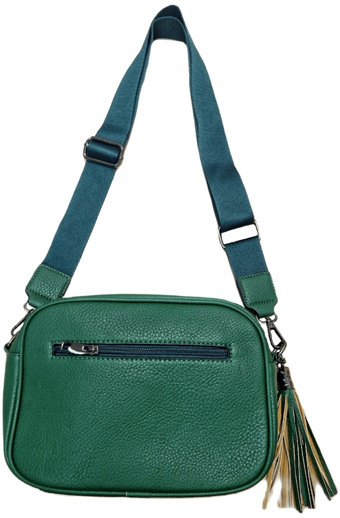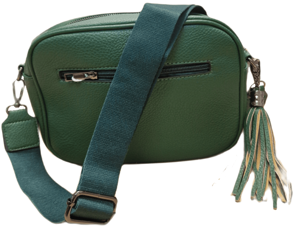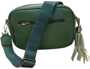 Střední kabelka přes rameno MIDI BAG, v zelené barvě, s třásňovou ozdobou, je kombinací elegantního a sportovního - hodí se k obojímu. Pohodlně se vám do ní vejdou osobní věci jako mobil, klíče, peněženka, ale pojme i malé pití či svačinku, poznámkový blok nebo třeba skládací deštník.