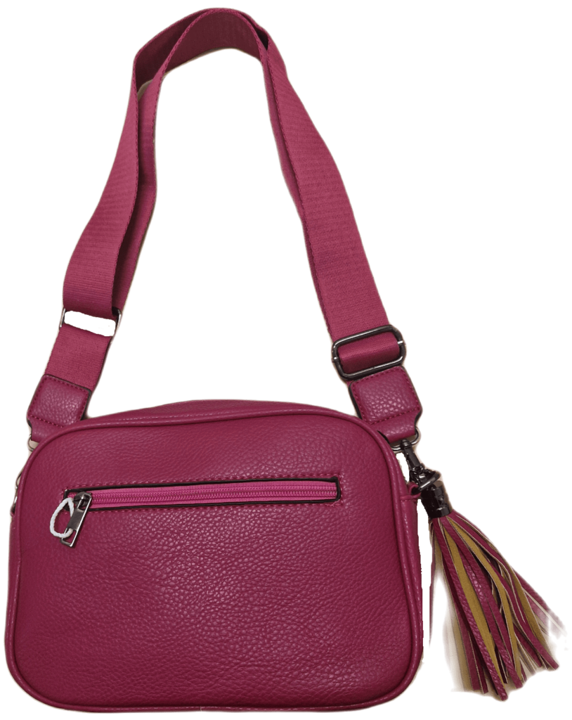 Střední kabelka přes rameno MIDI BAG, v moderní MAGENTA barvě, s třásňovou ozdobou, je kombinací elegantního a sportovního - hodí se k obojímu. Pohodlně se vám do ní vejdou osobní věci jako mobil, klíče, peněženka, ale pojme i malé pití či svačinku, poznámkový blok nebo třeba skládací deštník.