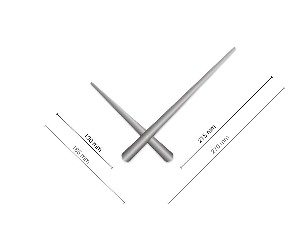 Stříbrné zúžené hliníkové ručičky na hodiny 215 mm | 130 mm