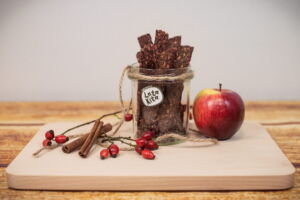 SLOŽENÍ: Hovězí maso – přes 80%, RŮŽE DIVOKÁ – 10% , Jablko – 7%, Lněné semínko -3%, Cejlonská skořice – 0,01