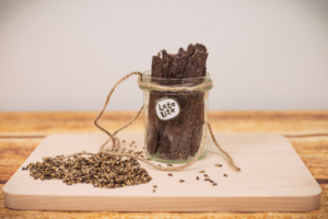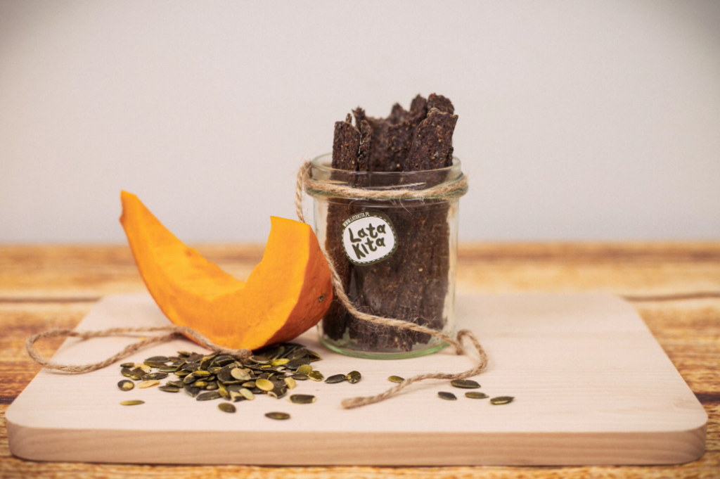 DÝNĚ – dýňová semínka se neřadí mezi superpotraviny bezdůvodně. Vysoká výživová hodnota je pro ně typická. Obsahují cenné minerály jako jsou hořčík, zinek, fosfor, železo, měď a jsou také zdrojem vitamínů skupiny B a účinných antioxidantů, vitamínu E a C, které zachytávají volné radikály. Dýňová semínka jsou také zásobárnou vitamínu D, který napomáhá k dobré stavbě kostí, podporuje taktéž nervovou a svalovou soustavu. Díky vysokému obsahu nenasycených mastných kyselin omega 3 a 6 zlepšují kvalitu kůže a srsti. Vysoký obsah bílkovin je další výhoda této nezvyklé superpotraviny. Obsahuje tryptofan, aminokyselinu, která je prekurzorem serotoninu – hormonu štěstí, který napomáhá psovi vyrovnat se stresovými situacemi nebo depresivními náladami. Je důležité mít na paměti také vlákninu, která pozitivně působí na střevní mikroflóru. K tomu hovězí maso. Olej z černuchy, dlouhá léta používaný v bylinné medicíně, obsahuje mnoho zdraví prospěšných substancí, mimo jiné: ze zhruba 85 % je složen z nenasycených mastných kyselin, které tvoří: kyselina linolová (omega-6) – kolem 60 %, kyselina olejová (omega-9) – kolem 25 % a kyselina alfa-linoleová (omega-3) – kolem 1 %. Obsahuje vitamín E, beta-karoten, steroly, biotin, mnoho mikroživin a antioxidantů. Nejdůležitější sloučeninou obsaženou v oleji z černuchy je však thymochinon – součást éterického oleje semen černuchy, díky kterému olej působí proti bolesti a také chrání buňky jater a ledvin. Z výzkumů vyplývá, že thymochinon má také vliv na zpomalení růstu nádorů. Klinické studie ukazují, že způsobuje snížení hladiny glukózy, prolaktinu, triglyceridů a cholesterolu.