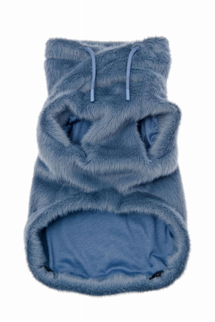 Psí svetr je velmi jemný a příjemný na dotek. Kožešinové provedení také vypadá skvěle a dodává styl! Oděv se obléká přes hlavu mazlíčka. Kolem krku má speciální šňůrku, která vám pomůže ji správně upravit. U krku je také malý otvor pro šňůrku. Navíc má odnímatelné elastické popruhy pro zadní nohy psa. Spodní část svetru je nastavitelná gumičkou a knoflíkem.