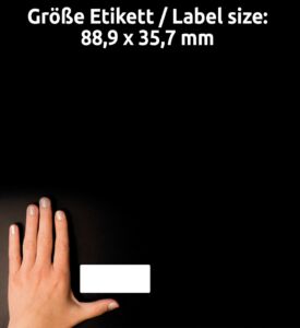 rozměr 88,9×35,7 mm, 4.000 ks etiket v balení, jednořadé, papírové, permanentní lepidlo, barva bílá. Typ tiskárny: jehličková.