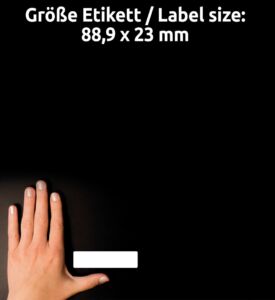 rozměr 88,9×23 mm, 6.000 ks etiket v balení, jednořadé, papírové, permanentní lepidlo, barva bílá. Typ tiskárny: jehličková.
