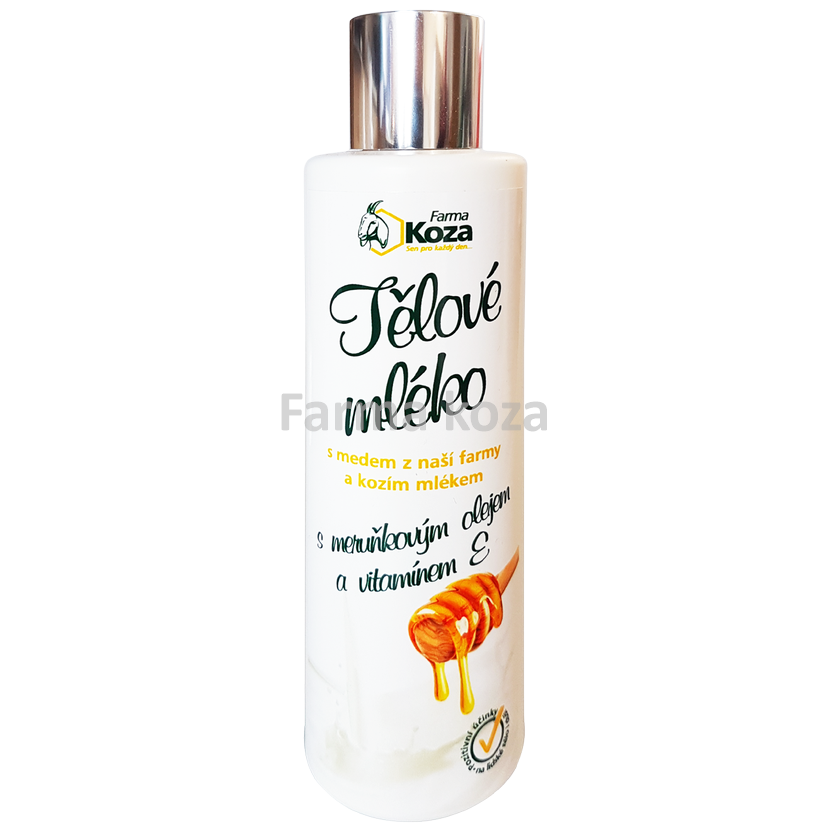 Extra jemné tělové mléko obsahující hydratační složky z kozího mléka a medu. Med společně s kozím mlékem pleť zvlhčuje a zajistí, že bude atraktivnější a udrží si svoji vlhkost. Hydratace způsobí, že vaše pleť bude vláčnější, poddajnější, elastičtější a jemnější. Kromě toho obsahuje med účinné antioxidanty, které hrají důležitou roli při ochraně pleti proti škodlivému UV záření. Dále aktivně bojuje proti příznakům stárnutí a působí antibakteriálně. V medu jsou obsaženy živiny a další léčivé látky, které mají pozitivní vliv nejenom na samotnou pokožku, ale i na vlasy a nehty. Kozí mléko díky antioxidantům chrání dokonale pokožku před působením volných radikálů, předčasným stárnutím a vnějšími vlivy. Kozí mléko také působí proti aknéatopickéhmu ekzému a lupénce.