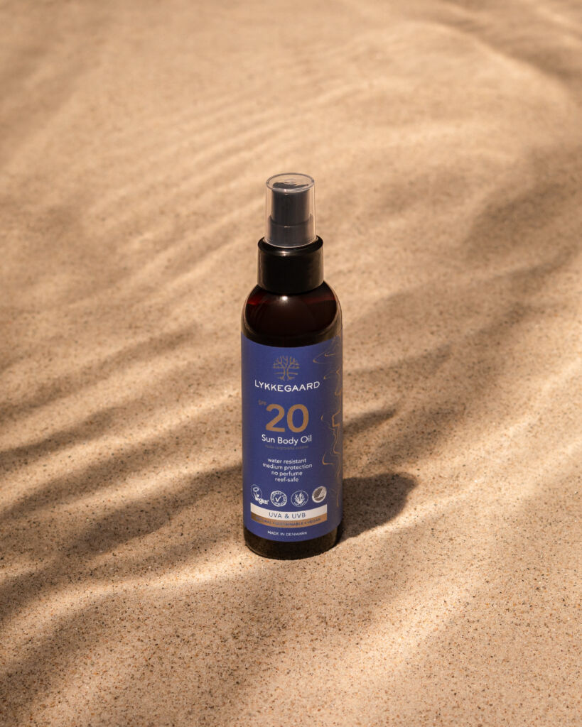 Tělový olej na opalování LYKKEGAARD Sun Body Oil SPF 20 navíc prošel přísnými testy, aby získal certifikát pro alergiky. To znamená, že byl klinicky testován a schválen dermatology jako bezpečný produkt i pro lidi s citlivou nebo alergickou pokožkou. Tělový olej proto neobsahuje parfemaci a zároveň je vhodný pro všechny typy pleti.