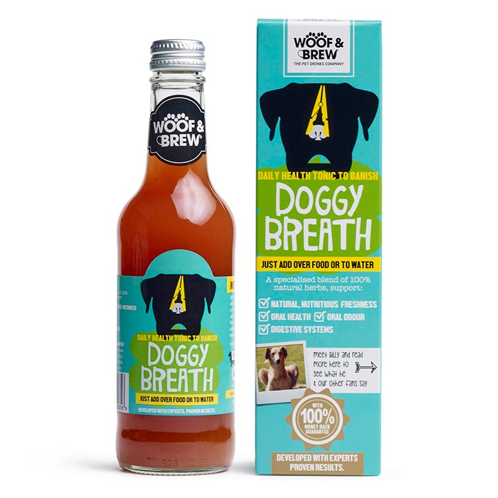 Smrdí vašemu psovi z tlamy? Rozhodně to tak nemusí zůstat! Psí tonik od Woof & Brew poskytne vašemu pejskovi nejenom dokonalé zpestření každodenní stravy, ale taky podporu zdravých zubů, dásní a trávení. Díky tomu budou další polibky od vašeho miláčka svěží a voňavé!