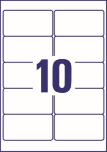 rozměr 96×50,8 mm, 25 archů A4, 250 ks etiket v balení (10 ks/arch), odolná PET fólie, permanentní lepidlo. Typ tiskárny: inkoustová.
