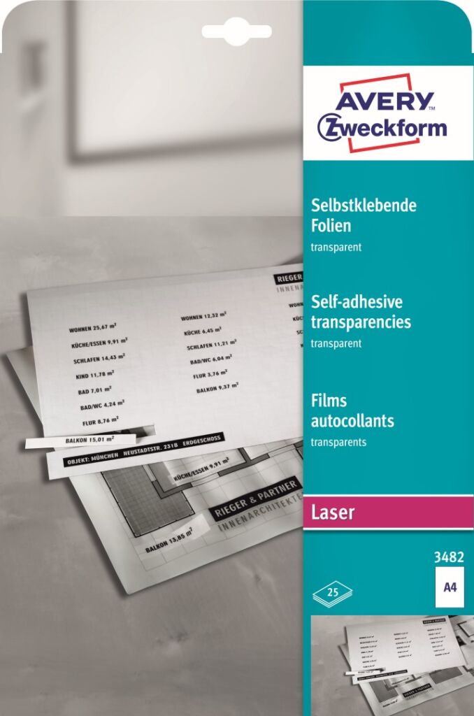 Samolepící fólie Avery Zweckform 3482 jsou ideální pro kopírování a tisk symbolů, log a grafiky a jsou vhodné i na ruční popis. Po nalepení fólie na požadované místo s ní, díky semipermanentní adhezi, můžete ještě chvíli hýbat. Speciální povrchová úprava pro ostré kontury tisku a vynikající přilnavost toneru. Fólie je na zadní straně opatřena splitem (násekem) a předtištěnou 10 mm mřížkou pro snadné vystřižení nebo nařezání potřebného formátu. Tyto fólie jsou vybaveny čtyřstrannou bezpečnostní hranou QCT (Quattro Clean Technology), vyvinutou firmou Avery Zweckform, zabraňující úniku lepidla do tiskárny a to znamená žádné zbytky lepidla v tiskárně a žádné drahé čištění zařízení. Transparentní samolepící fólie Avery 3480 jsou vhodné pro všechny běžné černobílé i barevné laserové tiskárny a kopírovací stroje. Fólie stačí jednoduše vložit do zásobníku na papír a bez problémů můžete potisknout i větší počet fólií najednou.
