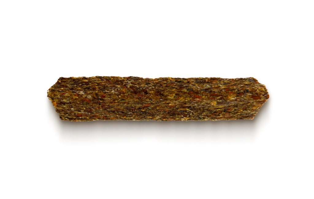 Kůže použitá na výrobu kostí je 100% přírodní a nebarvená. Má za sebou 3 týdenní proces sušení při nízké teplotě (mezi 25℃ a 28℃), což umožňuje zachovat cenné nutriční vlastnosti použitých ingrediencí. Pojivem funkčních žvýkacích kostí je kolagen, který se v kůži vyskytuje přirozeně.