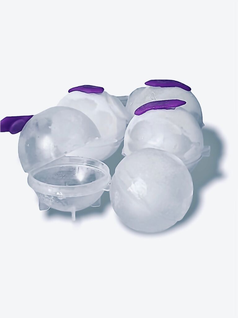 Vychytaný systém na tvorbu ledových koulí. Plastové tvořítko o velikosti 6 cm naplníte shora vodou (nechte trochu místa pod vrškem – led nabyde). Víčko uzavřete a dejte zmrazit. Ledové tvořítko pak pak v půli otevřete a vyklepnete pravidelnou kouli.