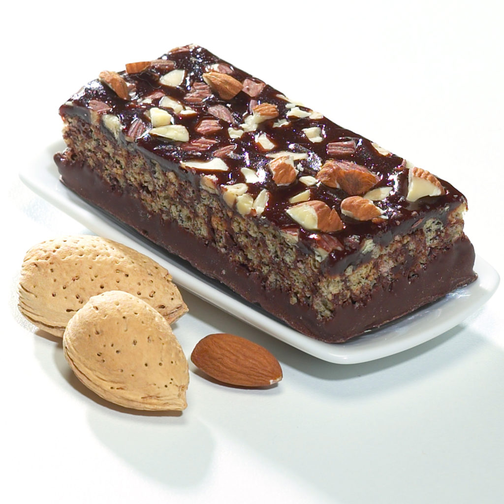 Směs bílkovin1,2 (izolované bílkoviny ze sóji2*, mléčné bílkoviny1); sladidla (maltitolový sirup*, maltitol, sukralóza); glycerol*; cukr; fruktooligosacharidy; voda; přípravek z rostlinného tuku (olej z palmových jader, palmový olej, bambucký olej); mandle3; kakao 3,7 %; třtinový cukr; neslazená čokoláda 2,5 %; přípravek z odtučněného mléka1* (smetana1, mléko1, zahušťovadla: celulózový gel, karagenany, celulózová guma, mléčná sušina1); škrob tapioka; koncentrovaná švestková šťáva; podmáslí1; aromata*; máslo1; smetana1; emulgátory (mono a diglyceridy*, sójový lecitin2*, mono a diglyceridy esterů kyseliny diacetylvinné*); sůl; zahušťovadla (pektin a karagenan); stabilizátor (fosforečnan sodný); regulátor kyselosti (citran sodný); kypřící látka (uhličitan vápenatý).