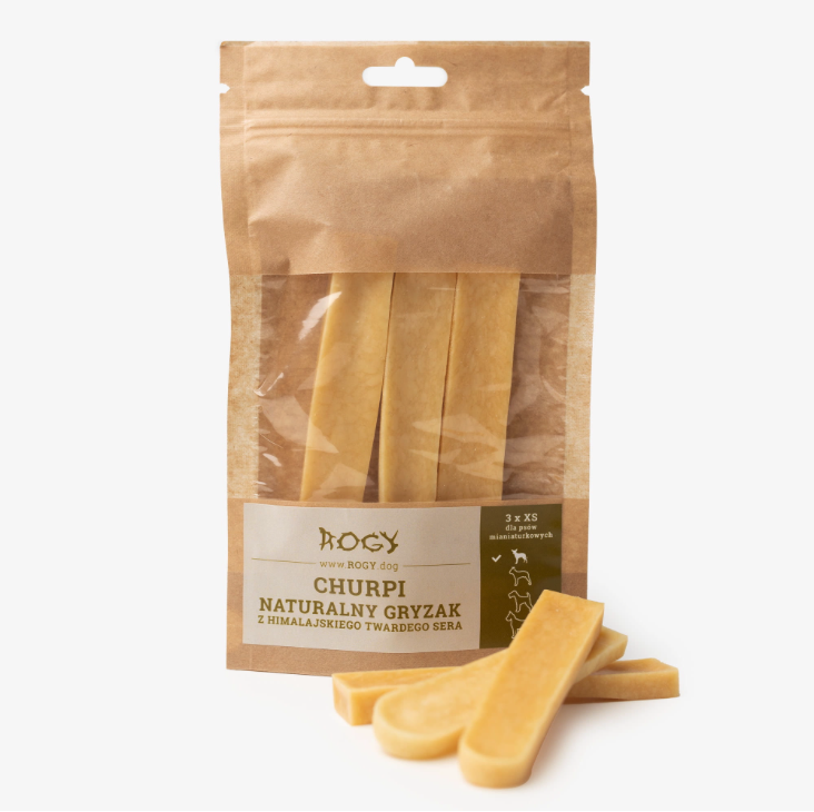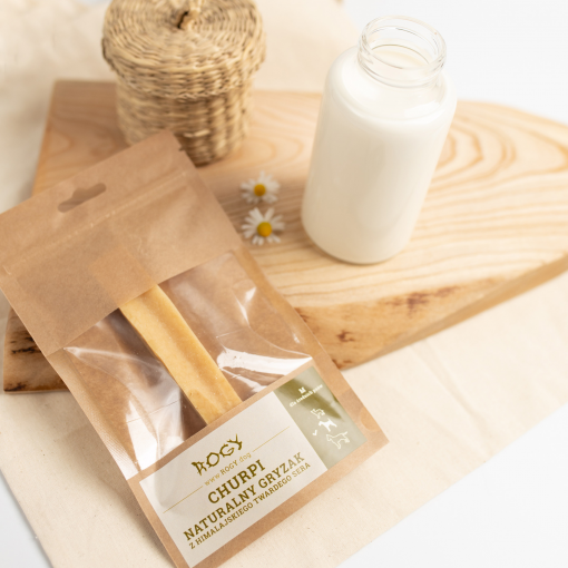 Je to sýr vyráběný podle himálajské receptury. Je vyroben pouze ze 2 ingrediencí. Odstředěné mléko a limetková šťáva. Výsledný sýr se lisuje několik dní a poté se suší za zvláštních podmínek déle než měsíc. Během tohoto procesu získává svou mimořádnou tvrdost. Hotový výrobek neobsahuje laktózu, proto nepříznivě neovlivňuje trávicí systém psa. Jako jedna z mála žvýkaček neobsahuje žádné chemikálie ani konzervační látky a navíc při jeho výrobě neutrpělo žádné zvíře. Velmi důležitou výhodou je, že nemá vůbec žádný zápach. Přesto ho psi milují. Spotřeba tyčinky může psovi trvat od hodiny až po několik dní. Sýr Churpi je pod vlivem slin psa lehce gumovitý a potom může kousat na jeho kousky.