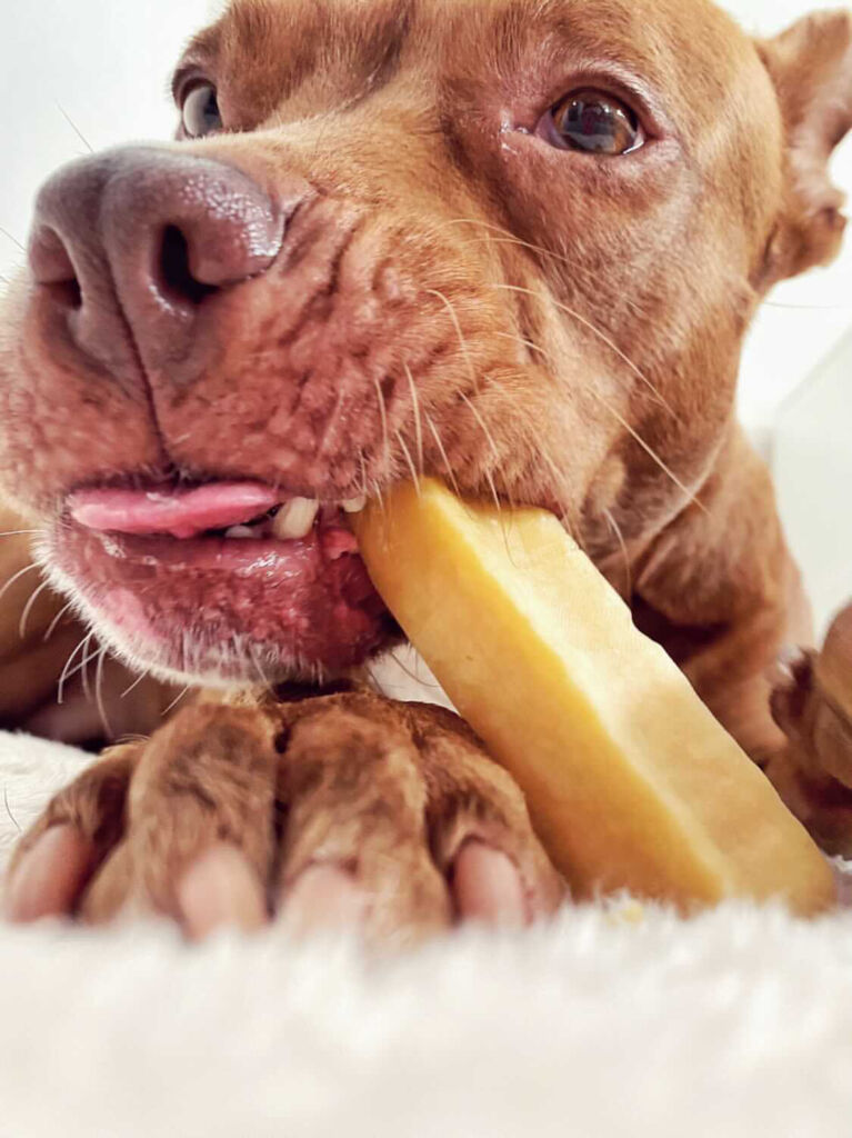 Náš tip: Vložte tyčinku na 2 minuty do mikrovlnky a vytvořte vašemu miláčkovi psí popcorn. Tyčinka změkne a krásně se rozvoní! Přírodní tyčinka ze sušeného mléka BEZ LAKTÓZY s kapkou limetky. Odstraňuje přebytečný povlak a jemně masíruje dásně. Je velmi snadno stravitelná. Téměř neobsahuje tuk - přibližně 2%. Žádná jiná přírodní tyčinka nemá takový obsah snadno stravitelného proteinu, a to až 84%!