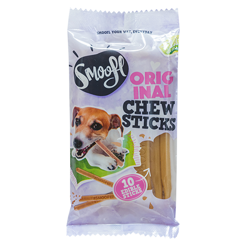 Žvýkací tyčinky Smoofl jsou 100% vyrobeny na zakázku pro vašeho pejska a jsou bez laktózy, obilovin a tuku, takže si na Smoofl pochutná každý pes.Totálně Smooflicious!