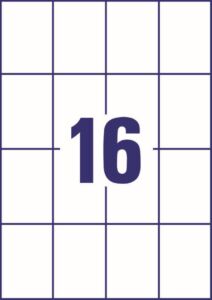 rozměr 52×74 mm, 50 archů A4, 800 ks etiket v balení (16 ks/arch), PE fólie, permanentní lepidlo, barva bílá. Typ tiskárny: černobílá laserová, barevná laserová.