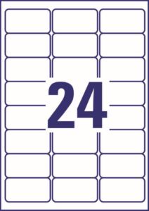rozměr 63,5×33,9 mm, 10 archů A4, 240 ks etiket v balení (24 ks/arch), PE fólie, permanentní lepidlo, barva bílá. Typ tiskárny: černobílá laserová, barevná laserová.