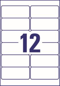 rozměr 99,1×42,3 mm, 40 archů A4, 480 ks etiket v balení (12 ks/arch), PE fólie, permanentní lepidlo, barva bílá. Typ tiskárny: černobílá laserová, barevná laserová.