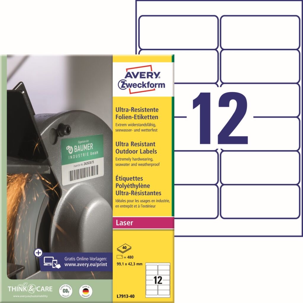 Extrémně odolné etikety Avery Zweckform L7913-40 do těch nejnáročnějších podmínek! Ideální na označování v oblasti výroby a skladování, značení výrobků, majetku, popis kontejnerů apod. Silná a trvalá přilnavost k nejrůznějším povrchům. Etikety jsou vyrobeny z flexibilního polyetylenového materiálu a jsou omyvatelné, odolné vůči mnoha rozpouštědlům a čistícím prostředkům, stříkající vodě i mořské, nečistotám, mastnotě, UV záření, stárnutí a teplotám od -40°C do +150°C. Při tisku se můžete spolehnout na plynulý průjezd archů tiskárnou bez uvíznutí a ostrý tiskový výstup, který se díky vynikajícímu ukotvení tonerového prášku nerozmazává. Samozřejmostí je čtyřstranný bezpečnostní okraj QCT (Quattro Clean Technology), který zabraňuje vytékání a usazování lepidla v tiskárně. Ultra odolné samolepící etikety Avery L7913-40 jsou vhodné pro všechny běžné černobílé a barevné laserové tiskárny a kopírovací stroje.