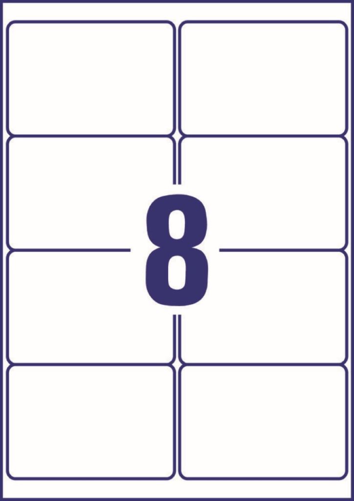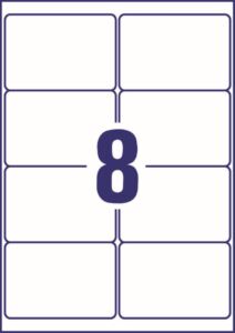 rozměr 99,1×67,7 mm, 10 archů A4, 80 ks etiket v balení (8 ks/arch), PE fólie, permanentní lepidlo, barva bílá. Typ tiskárny: černobílá laserová, barevná laserová.
