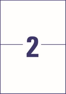 rozměr 210×148 mm, 40 archů A4, 80 ks etiket v balení (2 ks/arch), PE fólie, permanentní lepidlo, barva bílá. Typ tiskárny: černobílá laserová, barevná laserová.