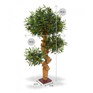 Ukotveno na dřevěném podstavci (13x13cm). Šířka bonsaje cca 50cm. Výška 90cm.