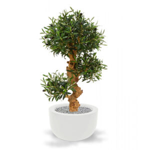 Umělá bonsaj na přírodním kmeni.