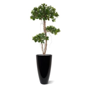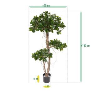 Ukotveno v plastovém květináči (17x15cm). Šířka bonsaje cca 70cm. Výška 140cm.
