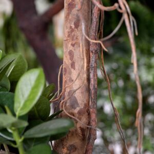 Umělá bonsaj na přírodním kmeni.