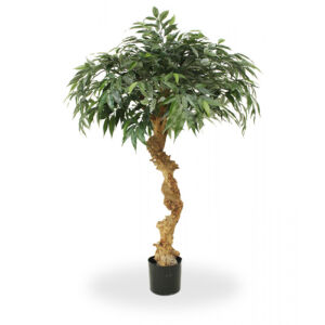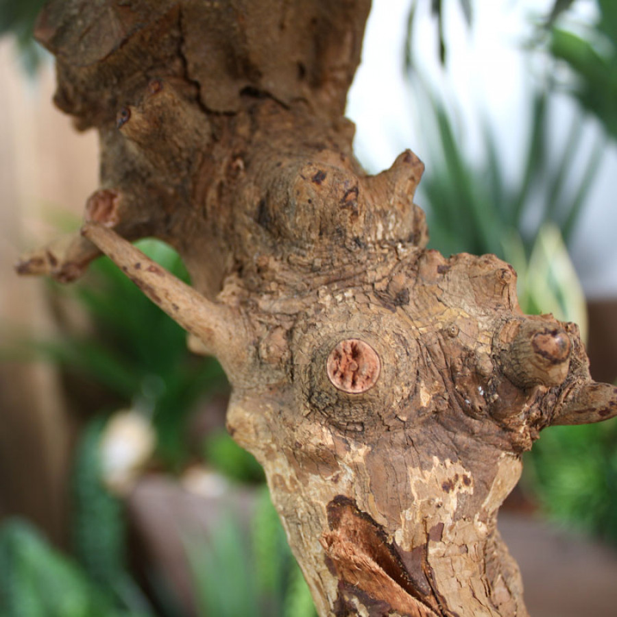 Umělá bonsaj na přírodním kmeni.