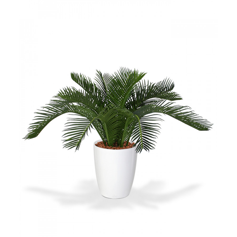 Skvělá imitace nižšího cykasu je standardně dodávána v plastovém květináči 17x15cm. Celková výška je 30cm, šíře cca 45cm.