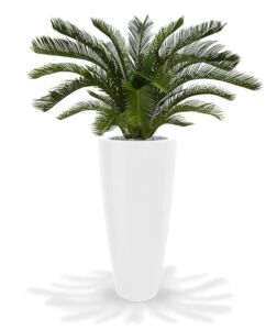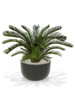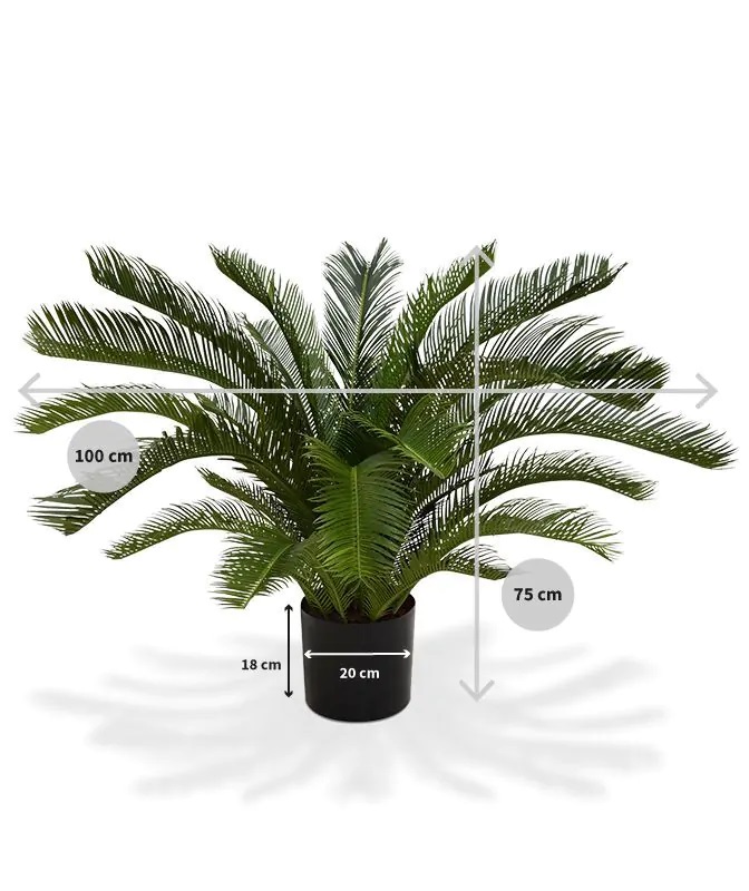 Skvělá imitace nižšího cykasu je standardně dodávána v plastovém květináči 20x18cm. Celková výška je 75cm, šíře cca 100cm.