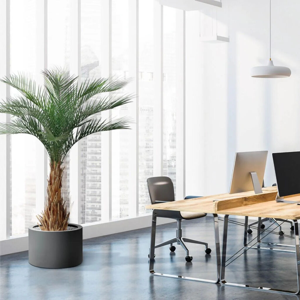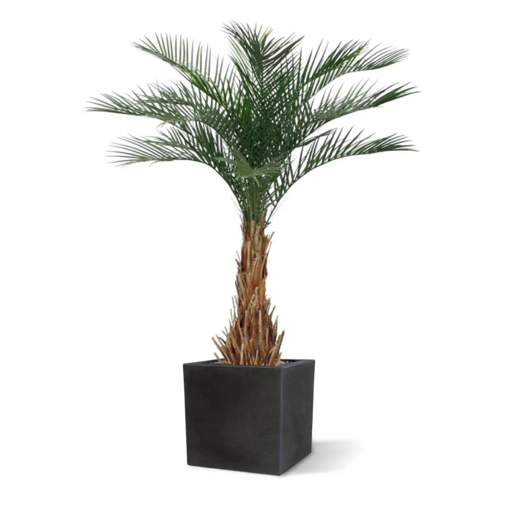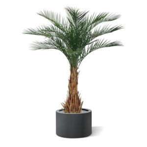 Ukotvena v plastovém květináči.