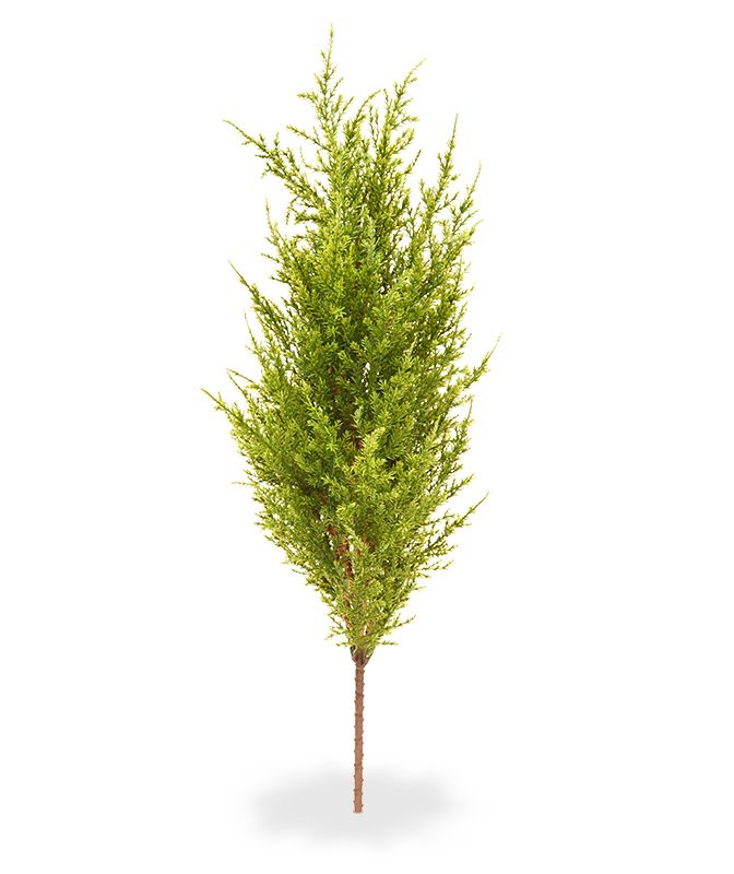 Větvička cypřiše, která se skládá ze 63 menších větviček světle zelené a žluté varvy. Celková délka včetně zapichovacícho trnu je 56cm.