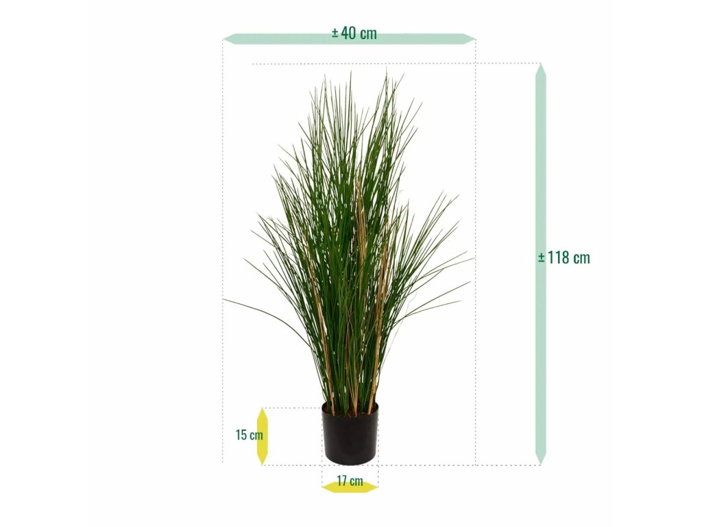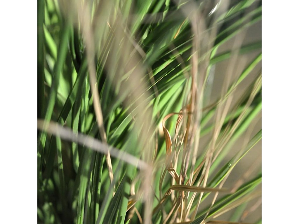 špičková imitace trávy. Výška 120cm. Standardně dodáváno ukotvené v plastovém květináči.