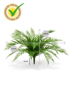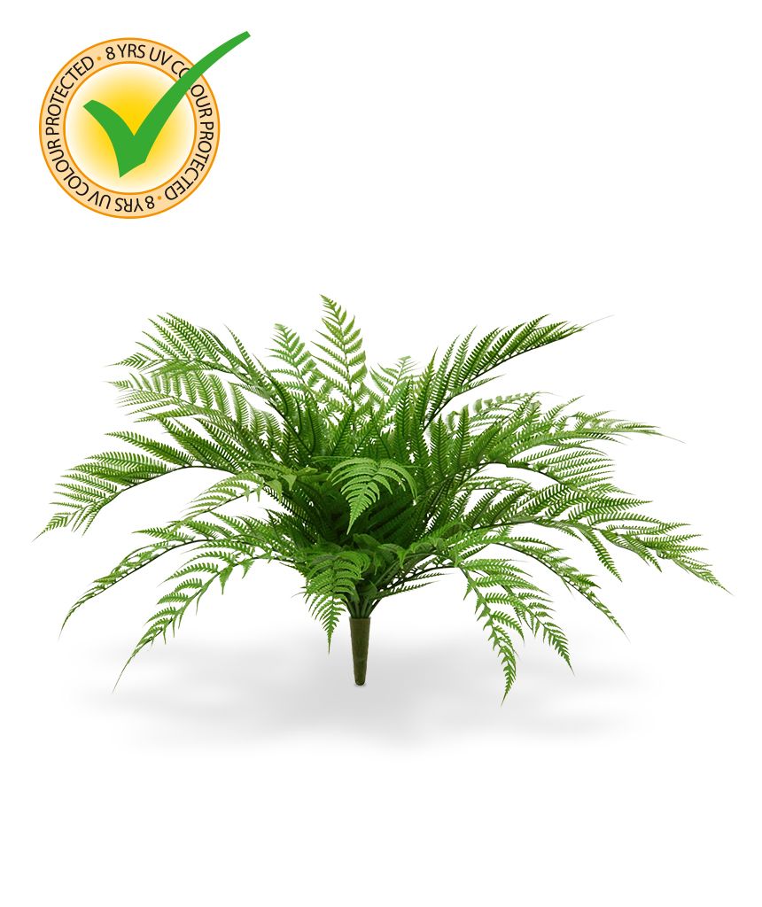 Kapradí je vyrobené z materiálu s UV ochranou, je tedy vhodné i do exteriéru. Rostlina je ukončena zapichovacím trnem, díky tomu si lze vytvořit mnoho dekorací.