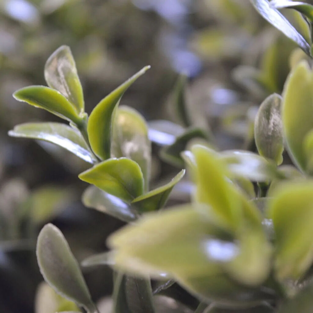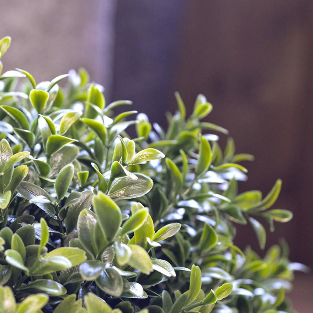 Umělý kulovitý buxus na přírodním kmínku. Vhodný do exteriéru díky materiálu s UV ochranou.